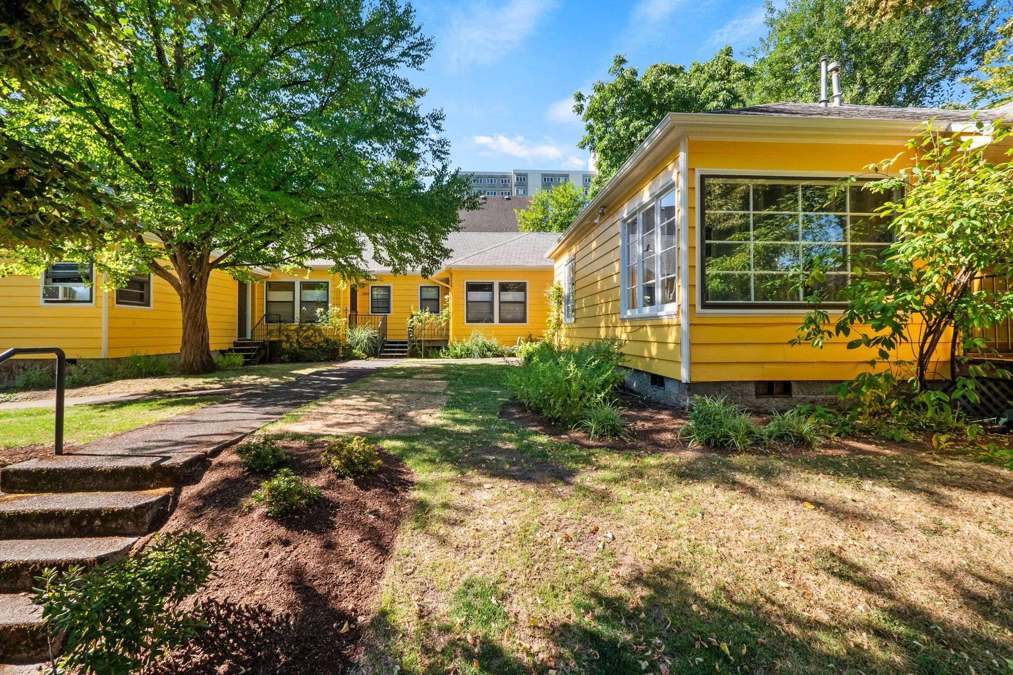 Courtyard-style setting with slight elevation from the street